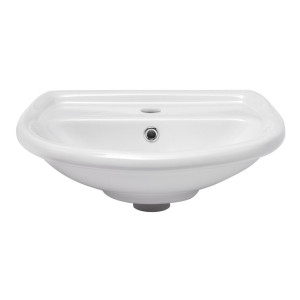 Dotaz na produktCenově dostupné umyvadlo s otvorem uprostřed v šíři 50 cm. Součástí dodávky není baterie, sada na uchycení umyvadla a sifon.