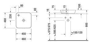 Umyvadlo na desku Duravit Cape Cod 46x46 cm bez přepadu 2340460000