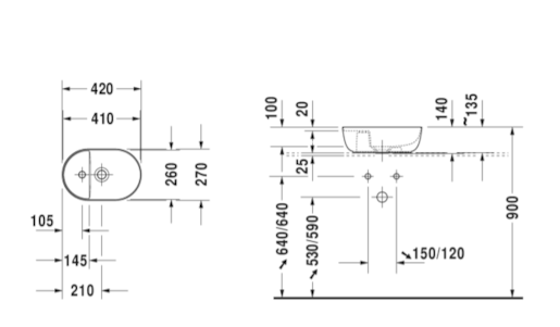 Umyvadlo na desku Duravit Luv 42x27 cm otvor pro baterii, bez přetoku 0381420000
