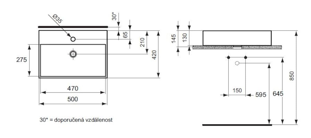 Umyvadlo na desku Ideal Standard Strada 50x42 cm otvor pro baterii uprostřed K081601