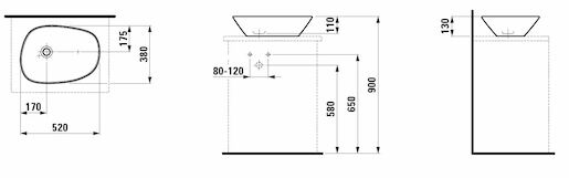 Umyvadlo na desku Laufen Palomba 52x38 cm bez otvoru pro baterii, bez přepadu H8168024001121