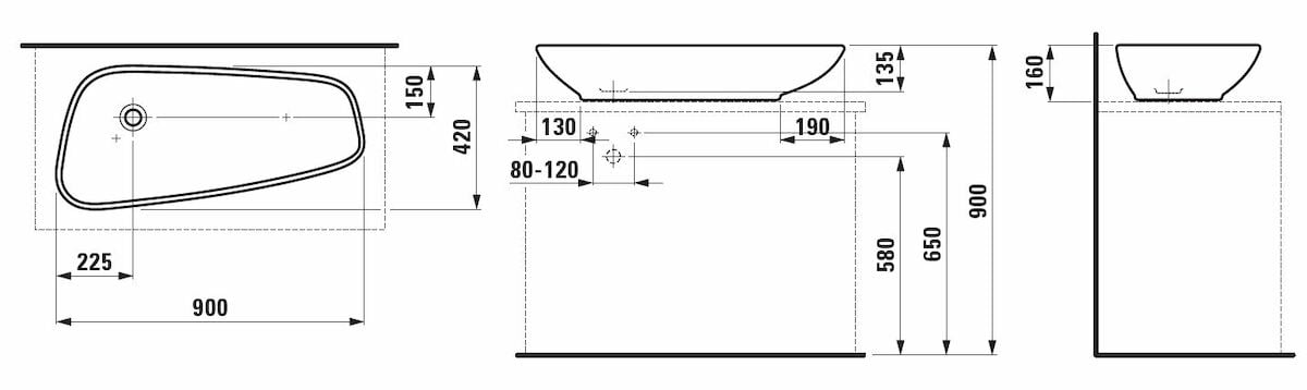 Umyvadlo na desku Laufen Palomba 90x42 cm bez otvoru pro baterii, bez přepadu H8168014001121
