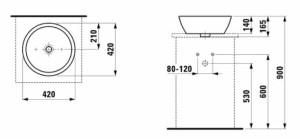 Umyvadlo na desku Laufen Pro 42x42 cm bez otvoru pro baterii H8129624001091