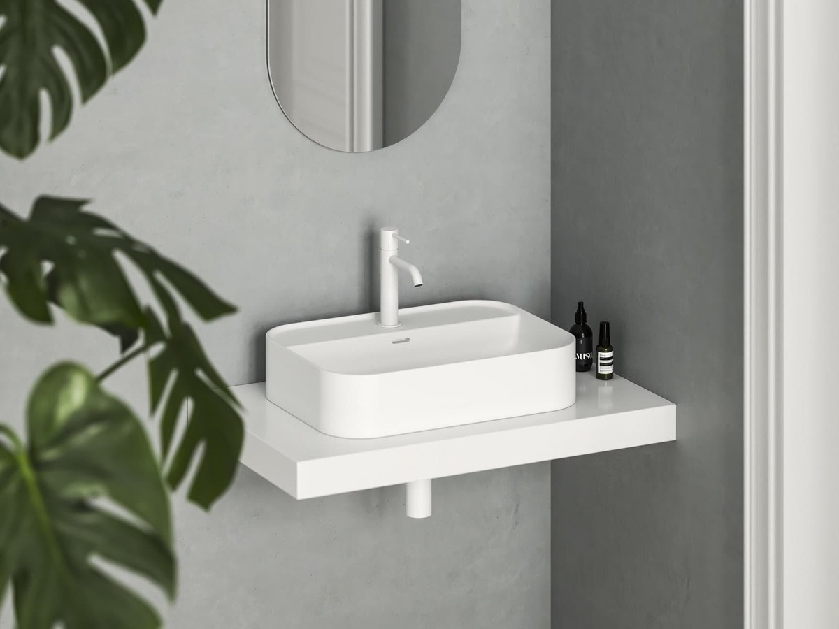 Umyvadlo na desku Ravak Ceramic Slim 55x40 cm bílá matná mat otvor pro baterii uprostřed XJX0E155005