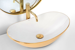 Dotaz na produkt Na splátky ještě dnesPředstavujeme Vám nové moderní umyvadlo na desku série Rea Royal. Umyvadlo tvaru elipsy je vyrobeno z materiálů nejvyšší kvality a jeho vlastnosti splní veškeré vaše požadavky. Tento model ocení především zákazník, hledající nejen funkční, ale také estetické řešení. Umyvadlo je určeno k montáži na desku, ale je možné ho kombinovat i se skřínkou. Umyvadlo v bílém lesklém provedení na vnitřní straně a zlatém lesklém provedení na vnější straně se navíc díky speciální fázi výroby snadno čistí a je velice odolné. Producent: Rea