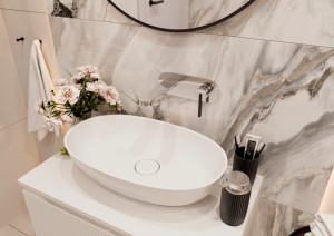Jeden z nejnovějších trendů v koupelnovém vybavení, který po právu neustále získává na popularitě. To je litý mramor. Směs syntetické pryskyřice a mletého dolomitu umožňuje precizní zpracování do každého detailu. Povrch je hedvábně jemný na dotek.