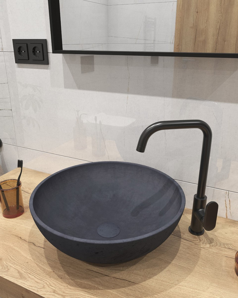 Dotaz na produkt Na splátky ještě dnesDesignové betonové umyvadlo s tenkými stěnami v antracitové barvě. Beton má jakožto přírodní materiál svůj charakteristický ráz. Má rozdílnou barvu a každý vyrobený kus je originální, mírně odlišný než ten předešlý. Užíváním se mění, nezůstává stejný, může obsahovat malé póry a mikrotrhliny, a právě tyto vlastnosti jsou stěžejními prvky estetična betonu a dávají mu jeho osobitý charakter.