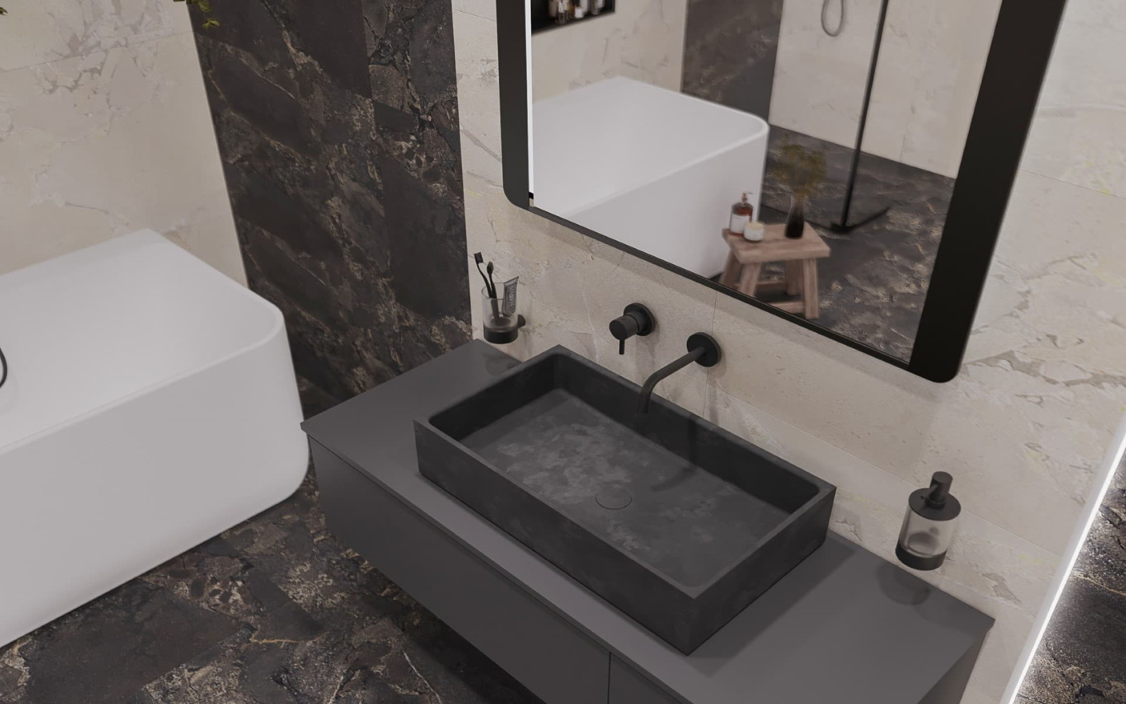 Dotaz na produkt Na splátky ještě dnesDesignové betonové umyvadlo s tenkými stěnami v antracitové barvě. Beton má jakožto přírodní materiál svůj charakteristický ráz. Má rozdílnou barvu a každý vyrobený kus je originální, mírně odlišný než ten předešlý. Užíváním se mění, nezůstává stejný, může obsahovat malé póry a mikrotrhliny, a právě tyto vlastnosti jsou stěžejními prvky estetična betonu a dávají mu jeho osobitý charakter.