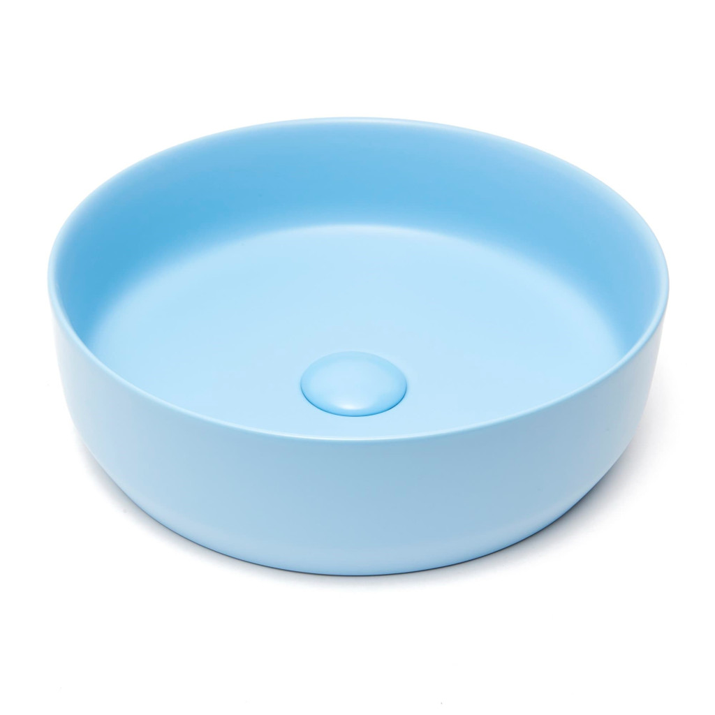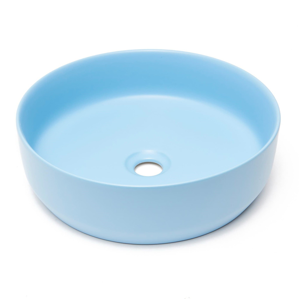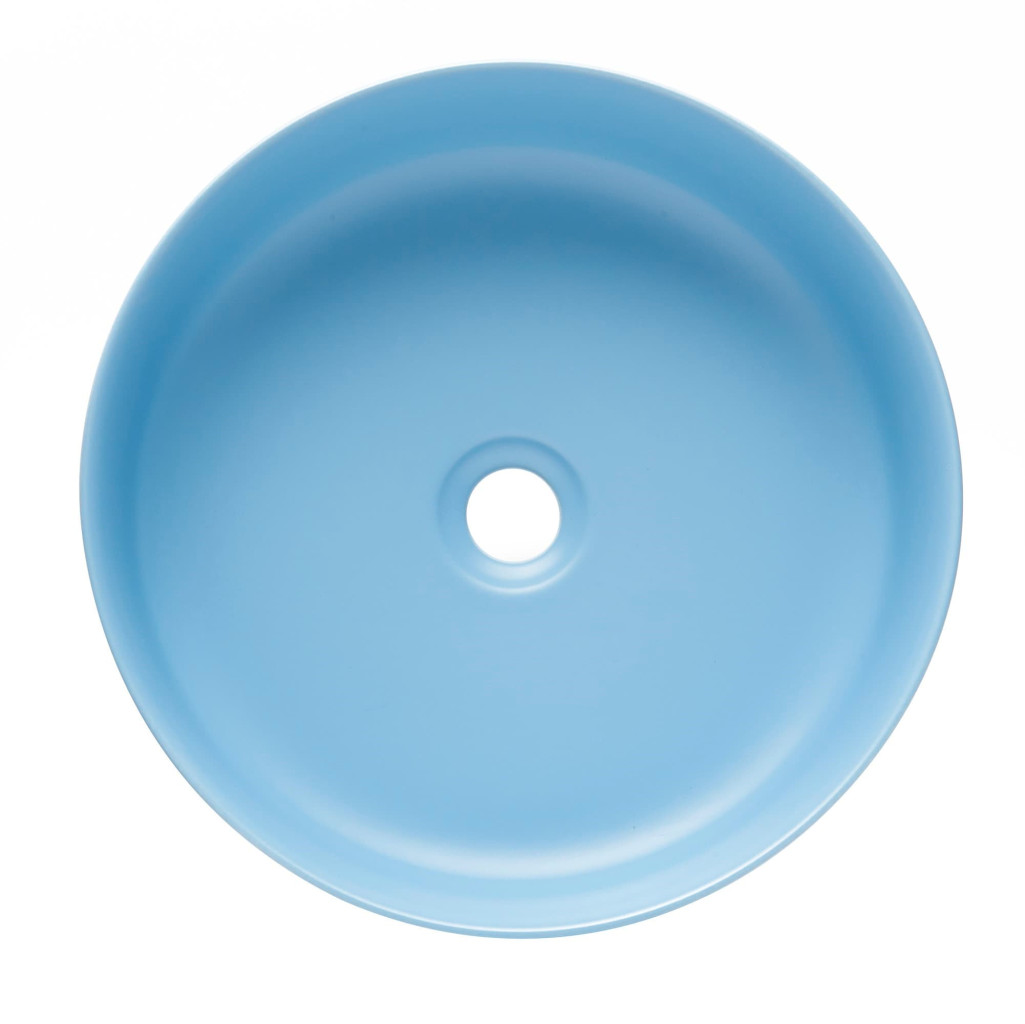 Matné tenkostěné umyvadlo na desku série Infinitio v modré barvě a rozměrech 39x39 cm promění vaši koupelnu v moderní oázu relaxace.