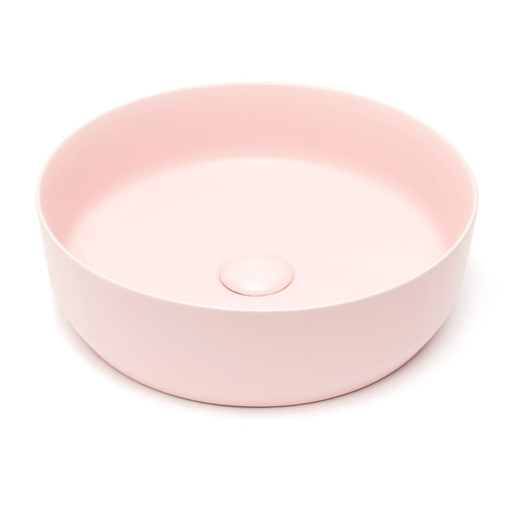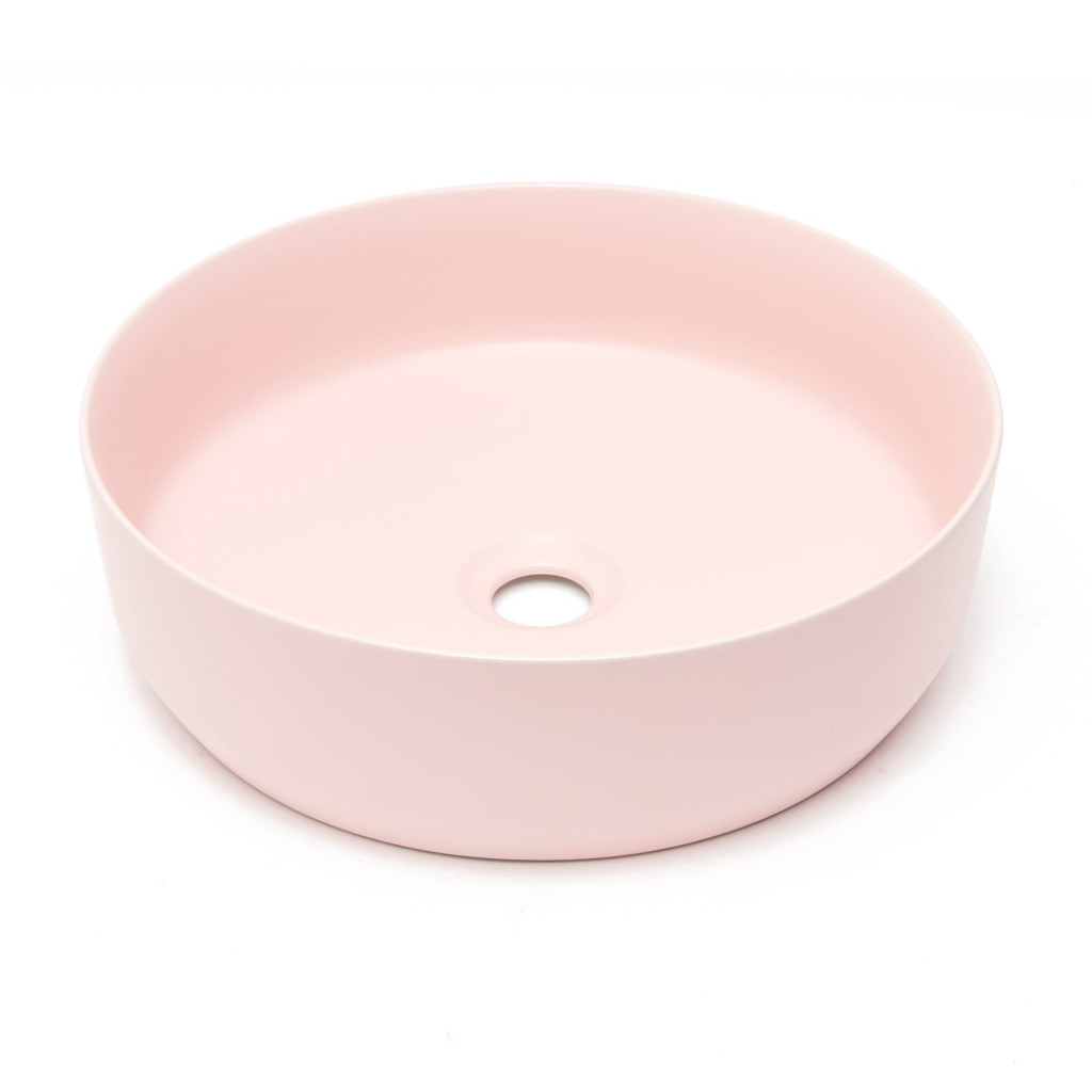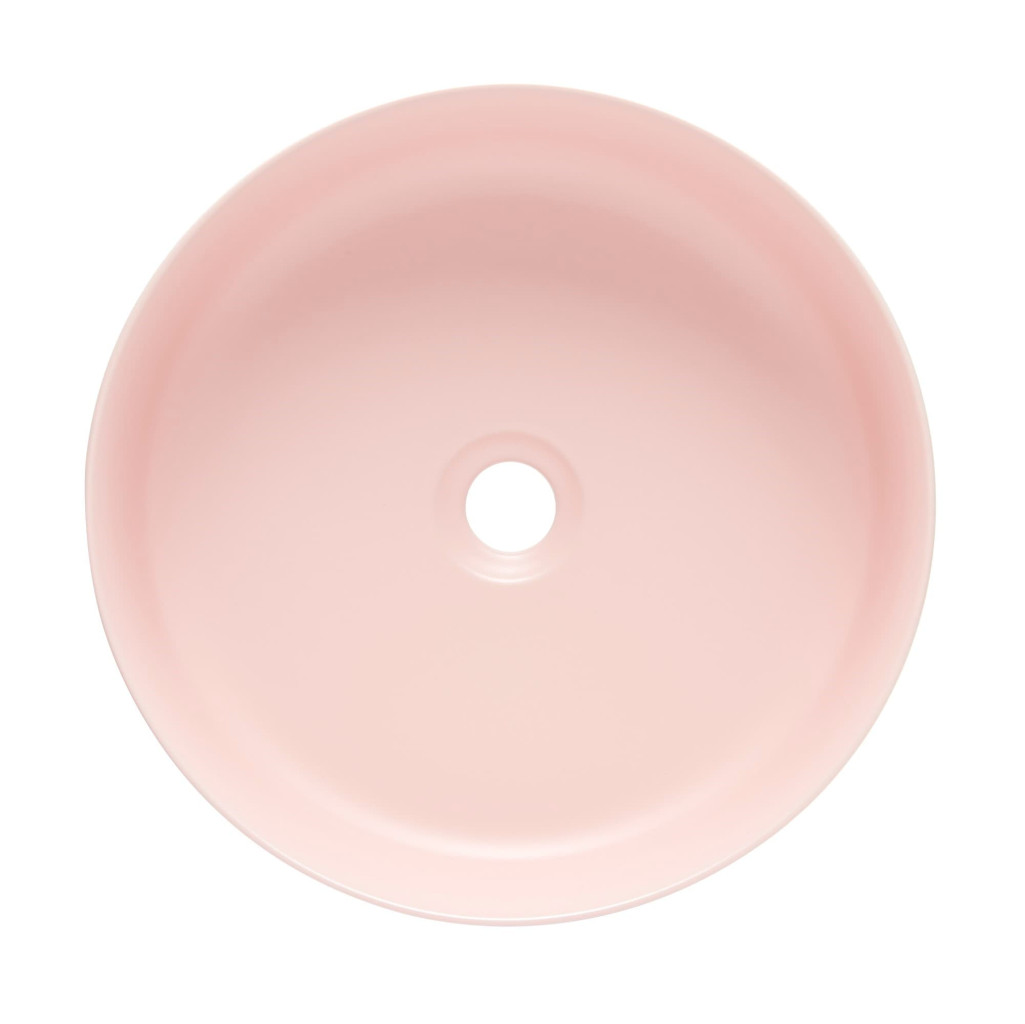 Matné tenkostěné umyvadlo na desku série Infinitio v růžové barvě a rozměrech 39x39 cm promění vaši koupelnu v moderní oázu relaxace.