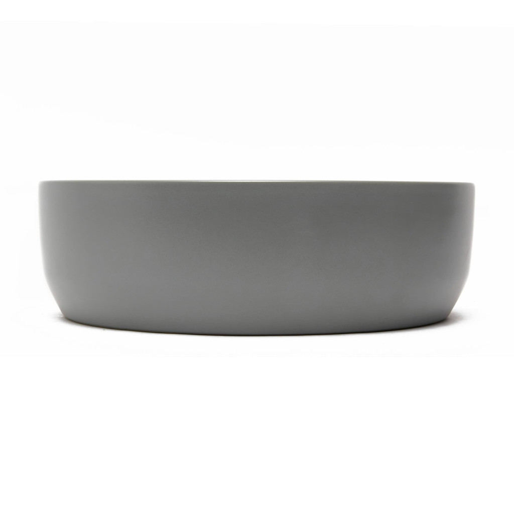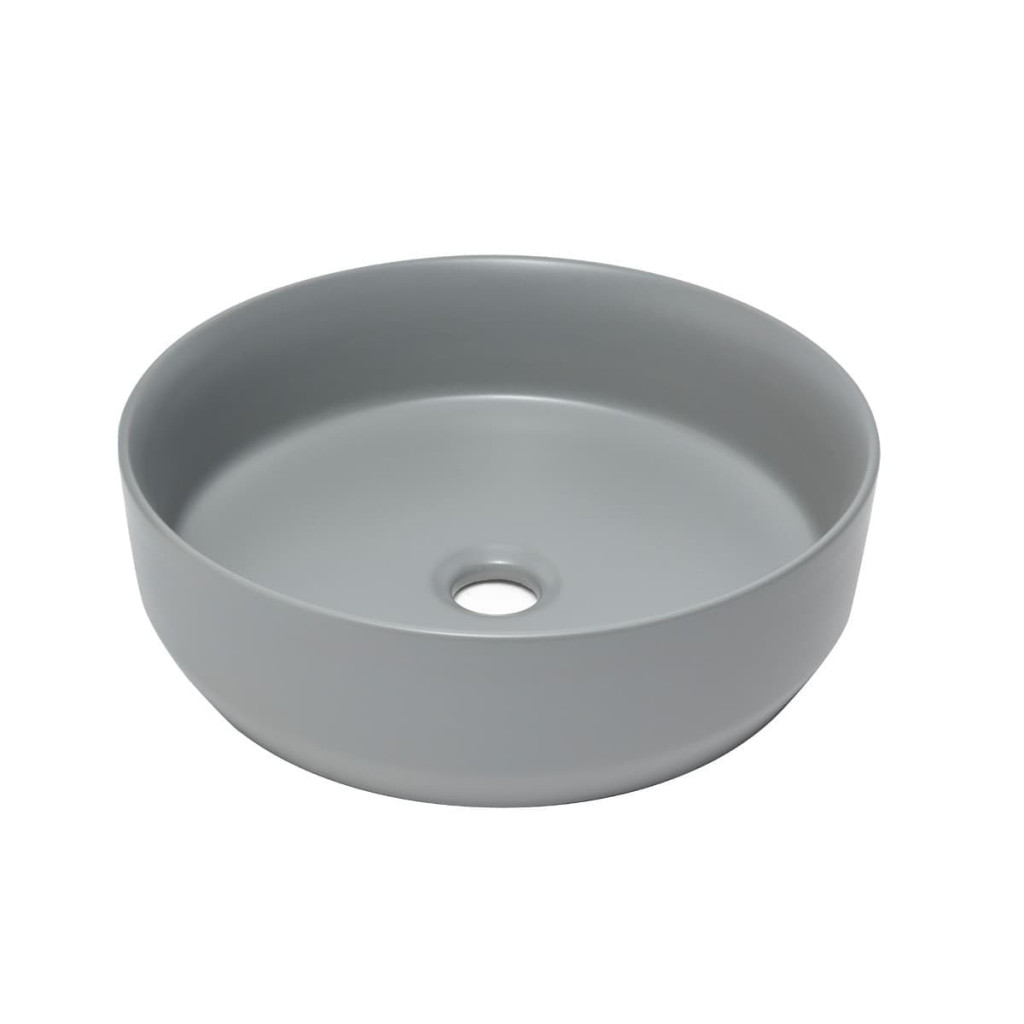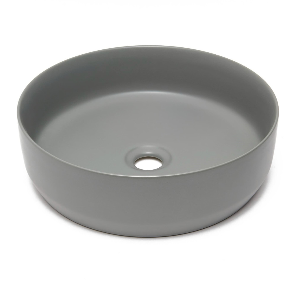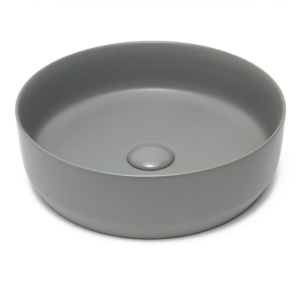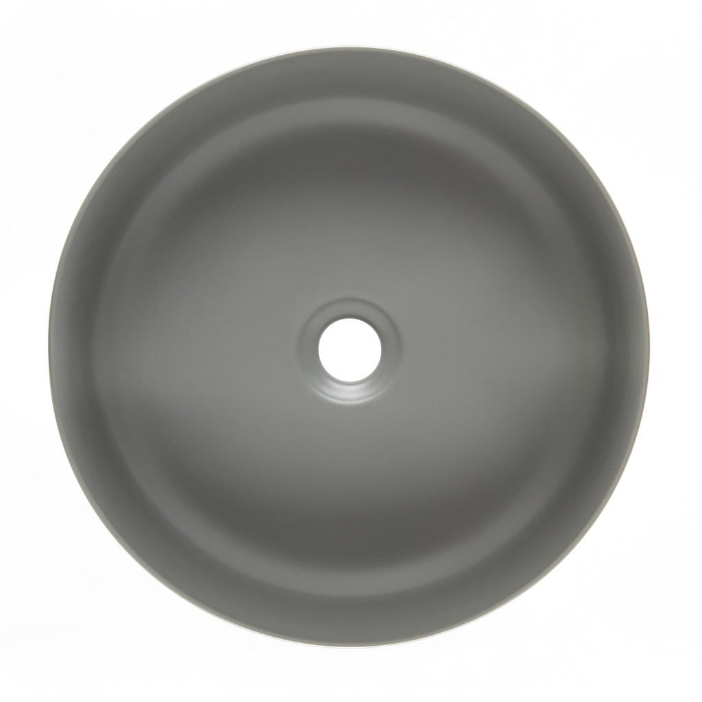 Matné tenkostěné umyvadlo na desku série Infinitio v šedé barvě a rozměrech 39x39 cm promění vaši koupelnu v moderní oázu relaxace.