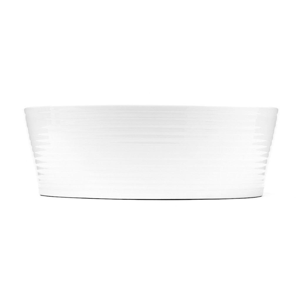 Dotaz na produkt Na splátky ještě dnesUmyvadlo na desku o průměru 40 cm z tenké keramiky. Okraje umyvadla jsou zdobeny lehkými vlnkami. Ideální pro kombinaci s vysokou umyvadlovou baterií nebo nástěnnou umyvadlovou baterií.