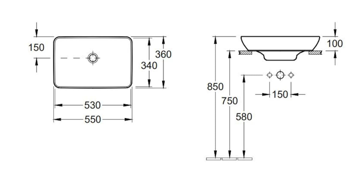 Umyvadlo na desku Villeroy & Boch 55x36 cm 411355R1