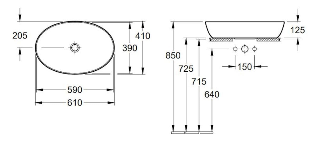 Umyvadlo na desku Villeroy & Boch 61x41 cm 41986101