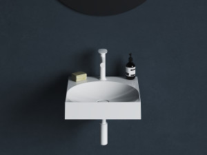„Litý mramor vybízel k vymodelování precizní hrany a dokonale rovných ploch, tedy detailů, které by při použití jiného materiálu nebyly dosažitelné.“ říká za dvojici autorů Roman Vrtiška. Výsledkem je atraktivní prolnutí pravoúhlých linií s organickým vnitřním tvarem samotného mycího prostoru. „Jako by se do rovné plochy umyvadla otiskl obří palec, který zanechal měkce tvarovanou stopu ve čtverci či obdélníku“ vysvětluje spoluautor Vladimír Žák.