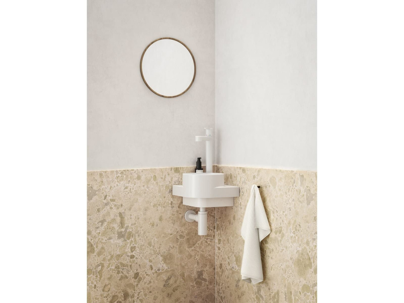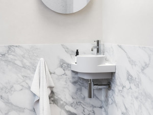 Dotaz na produkt Na splátky ještě dnesTenkostěnné keramické rohové umývátko Yard k instalaci na konzoli Yard, bez přepadu. Bílé matné provedení. S otvorem pro stojánkovou baterii.