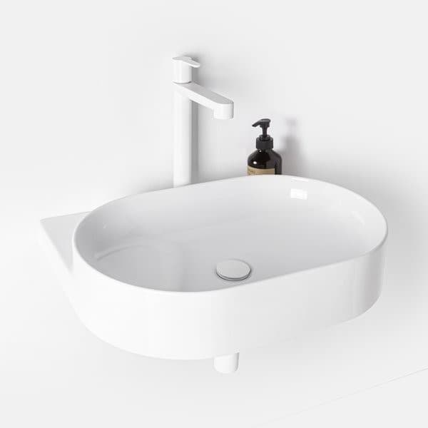 Za elegantním tělem umyvadla skrytá odkládací plocha poskytuje dostatečný prostor na odložení předmětů denní potřeby.