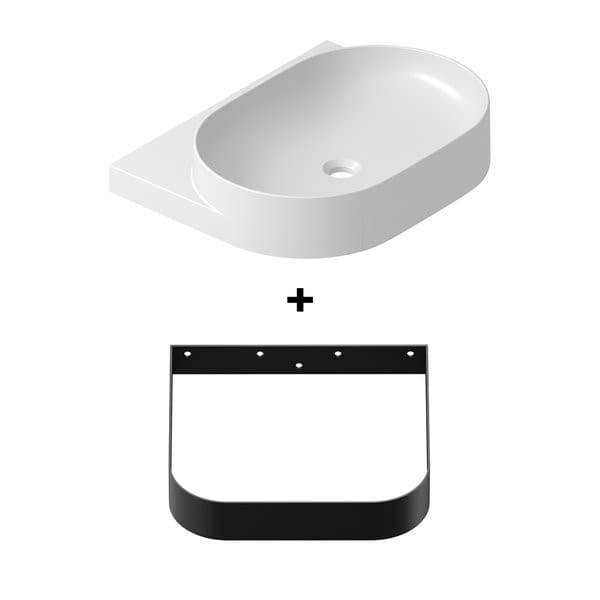 Designéři Vrtiška & Žák vykroužili dokonale minimalistické umyvadlo s odkládací plochou, sníženou pod jeho okraj a upevňovací konzolí, povýšenou na designový originál.