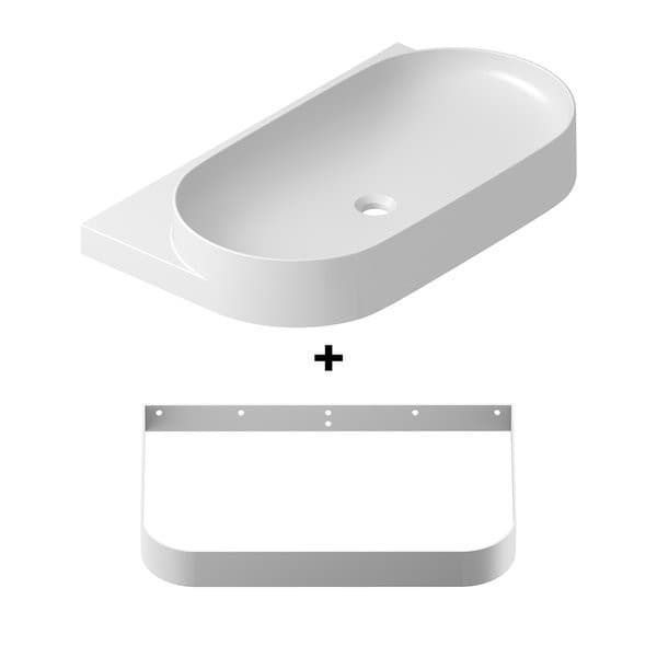 Designéři Vrtiška & Žák vykroužili dokonale minimalistické umyvadlo s odkládací plochou, sníženou pod jeho okraj a upevňovací konzolí, povýšenou na designový originál.