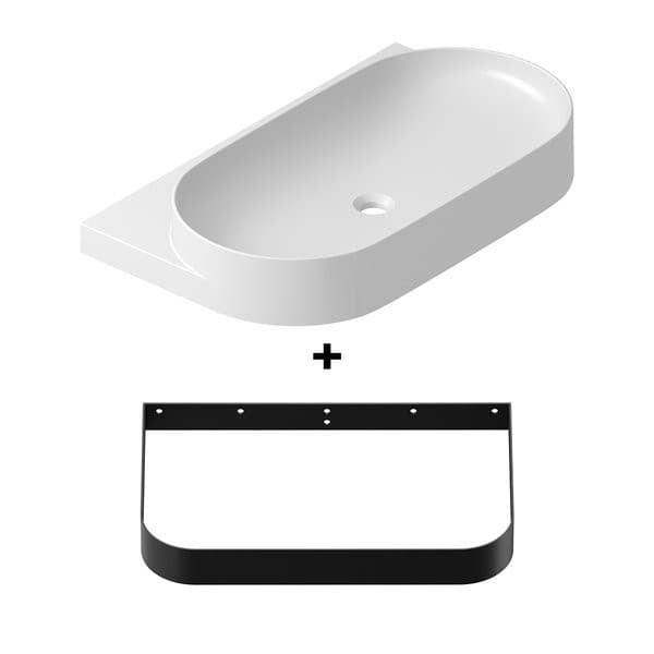 Designéři Vrtiška & Žák vykroužili dokonale minimalistické umyvadlo s odkládací plochou, sníženou pod jeho okraj a upevňovací konzolí, povýšenou na designový originál.