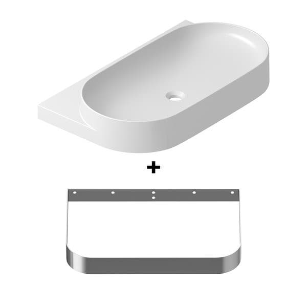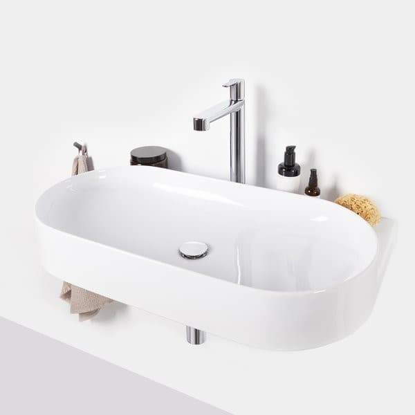 Designéři Vrtiška & Žák vykroužili dokonale minimalistické umyvadlo s odkládací plochou, sníženou pod jeho okraj a upevňovací konzolí, povýšenou na designový originál.