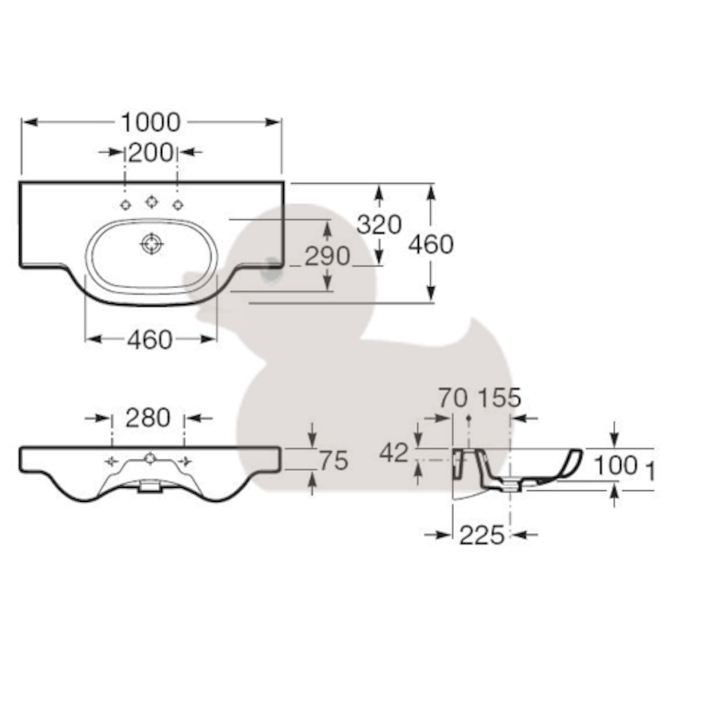 Umyvadlo Roca Meridian 100x46 cm otvor pro baterii uprostřed A32724B000