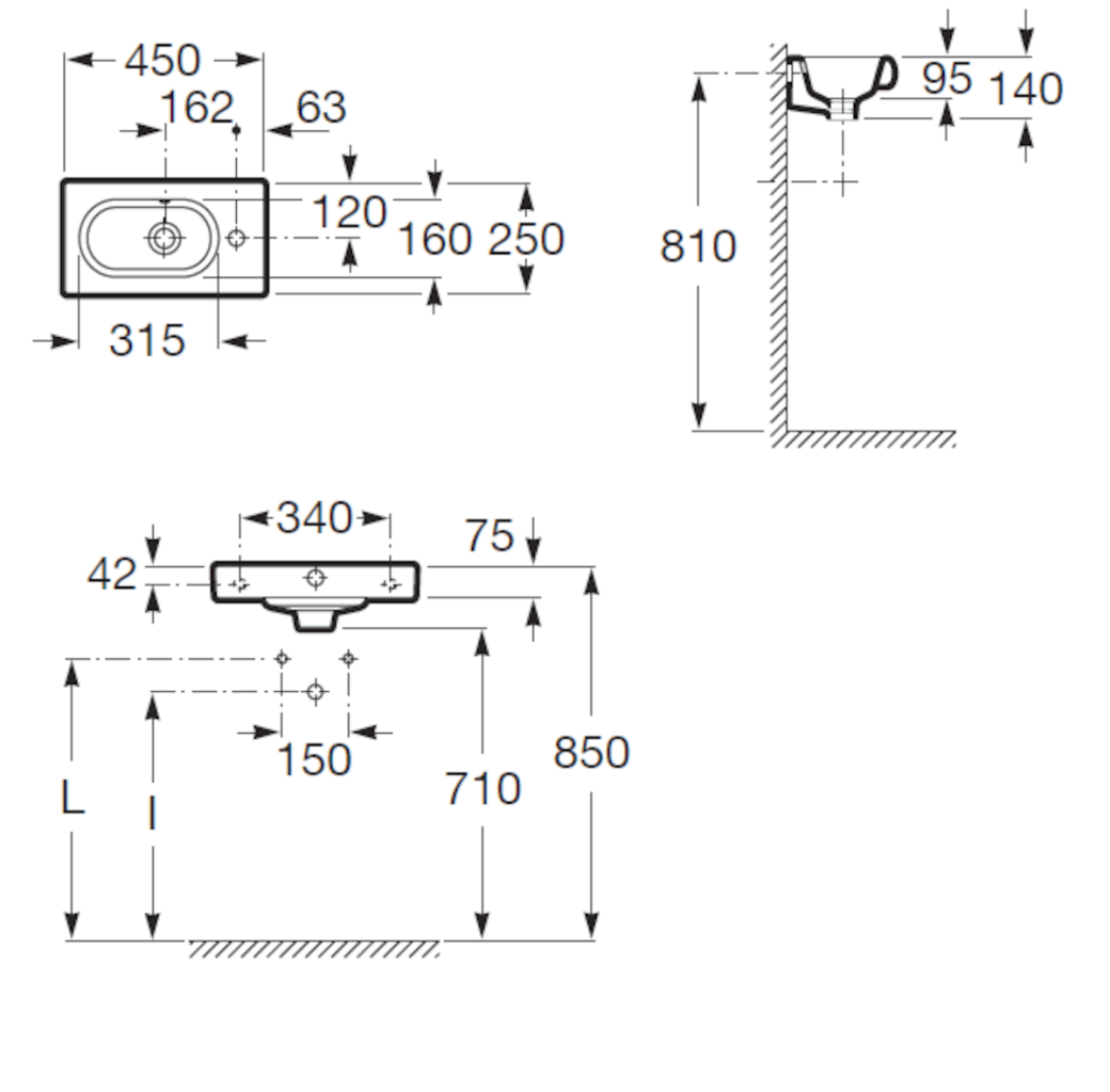 Dotaz na produkt Na splátky ještě dnesUmývátko o rozměrech 45x25 cm s otvorem na baterii vpravo. Součástí balení je sada na uchycení umyvadla na zeď, součástí balení není sifon a vodovodní baterie-
