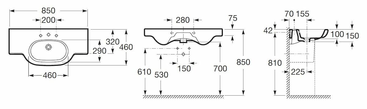 Umyvadlo Roca Meridian 85x46 cm otvor pro baterii uprostřed A32724D000