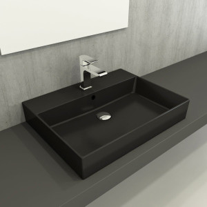 Umyvadlo SAT Infinitio 60,5x46,5 cm černá mat otvor pro baterii uprostřed SATINF6046BKM