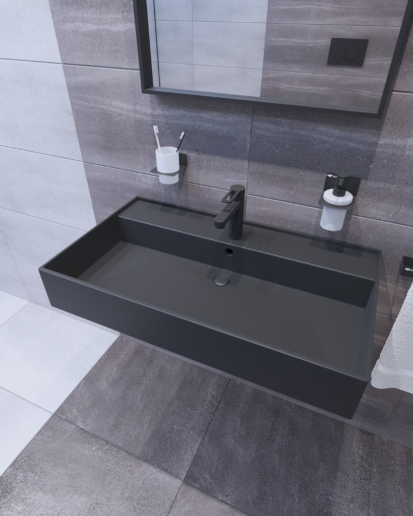 Umyvadlo SAT Infinitio 80,5x46,5 cm černá mat otvor pro baterii uprostřed SATINF8046BKM