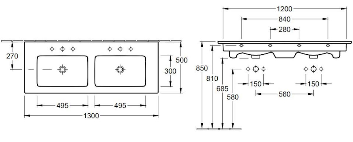 Umyvadlo Villeroy & Boch 130x50 cm 4111DLR1