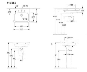 ÚvodKoupelnaUmyvadlaUmyvadlo Villeroy & Boch 55x47 cm otvor pro baterii uprostřed 41885501