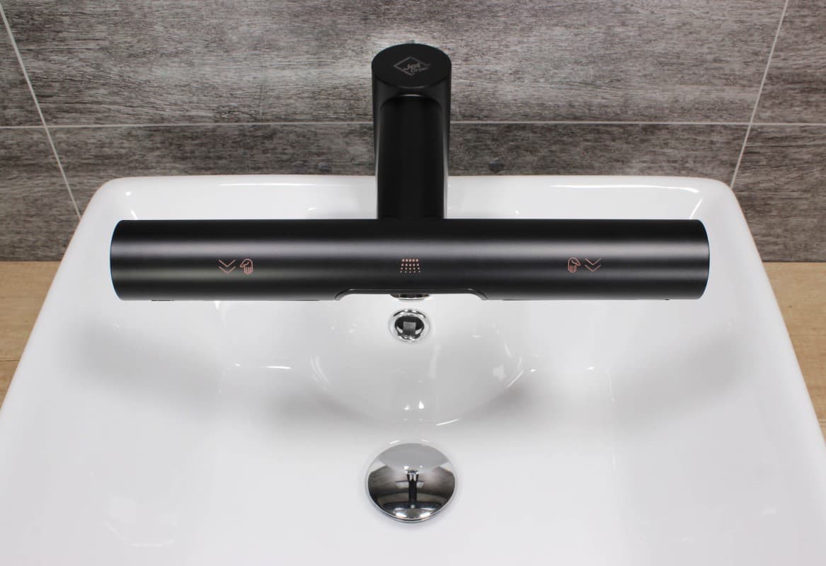 Hygienické umytí a osušení rukou nebylo nikdy jednodušší. Vložením rukou pod vodovodní baterii začne automaticky téct voda o předem nastavené teplotě. Uprostřed automatické baterie se nachází vyústění trysky vysoušeče. Spuštění je také bezkontaktní, stačí vsunout ruce a pohybovat s nimi podobně jako při mytí.
