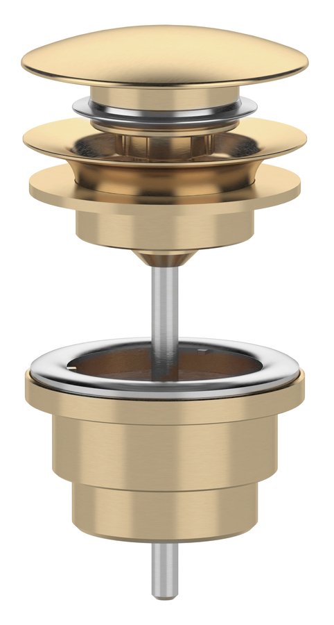 ÚvodKoupelnaUmyvadlaUmyvadlová výpust 5/4“, click-clack, velká zátka, 10-65mm, zlato mat