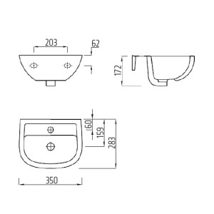 Umývátko 35x28 cm, s otvorem, bílé, VIGOUR One