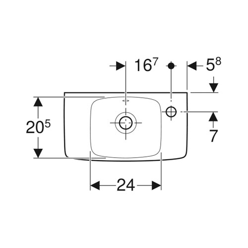 Umývátko 45x25 cm, malé vyložení, otvor pro baterii vpravo, s odkládací plochou vlevo, SELNOVA COMPACT