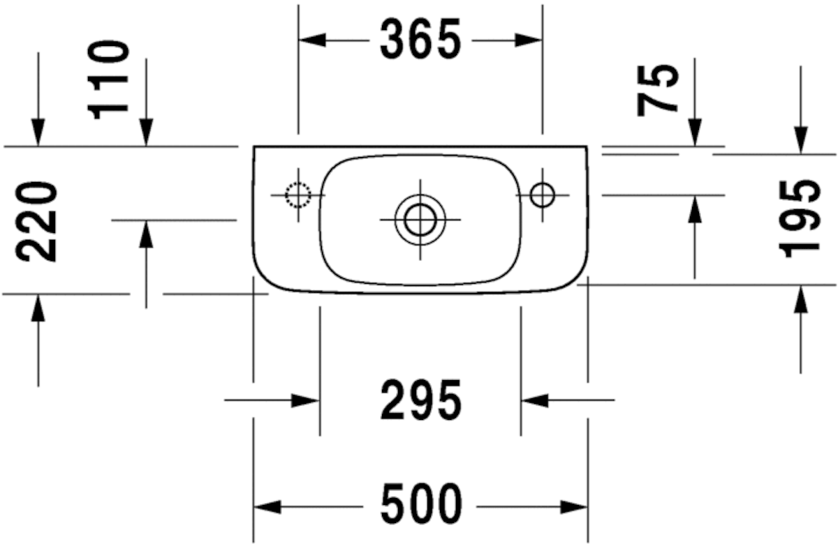 Umývátko Duravit Durastyle 50x22 cm bez otvoru pro baterii, bez přetoku 0713500000
