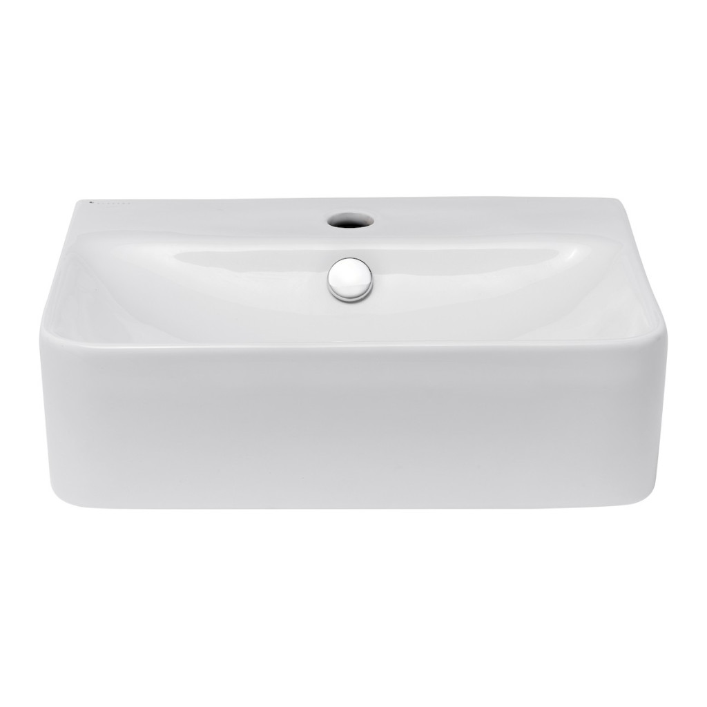 Dotaz na produkt Na splátky ještě dnesHranaté umývátko 44x35,7x12,4 cm s otvorem pro baterii uprostřed. S přepadem.Baterie, sifon a kryt sifonu není součástí výrobku.