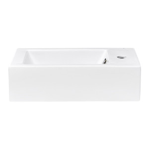 Praktické hranaté umývátko Bigio 50x25x14,4 cm s malou hloubkou. V nabídce s otvorem na baterii vpravo či vlevo. Je možné instalovat i do rohu. S přepadem.