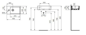 Dotaz na produkt Na splátky ještě dnesStrada umývátko 45 cm z jemné žárohlíny bez přepadu. 1 otvor pro umyvadlovou baterii nalevo. Upevnění – 2 šrouby M10 x 140 mm (K710767) - není součástí balení. Instalujte pouze s neuzavíratelnou odtokovou garniturou.