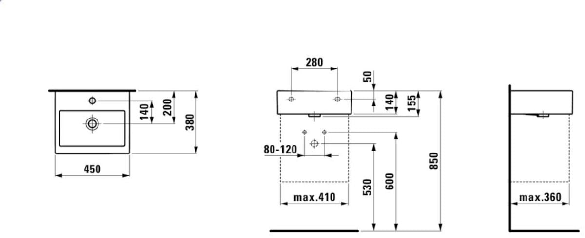 Umývátko Laufen Living 45x38 cm otvor pro baterii uprostřed H8154320001041