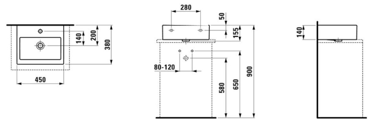 Umývátko Laufen Living 45x38 cm otvor pro baterii uprostřed H8154330001041
