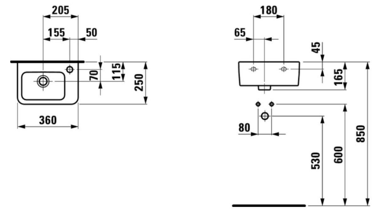 Umývátko Laufen Pro 36x25 cm otvor pro baterii vpravo H8169554001061