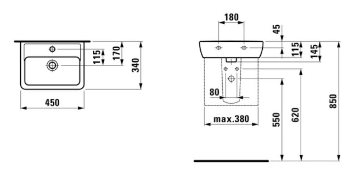 Umývátko Laufen Pro 45x34 cm otvor pro baterii uprostřed H8119514001041