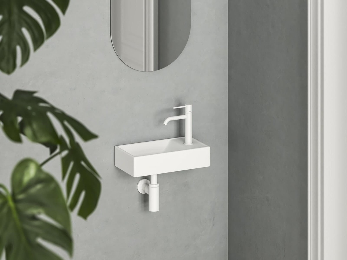 Umývátko Ravak Veda 40,8x22,2 cm bílá matná mat otvor pro baterii, bez přepadu XJXPE240000