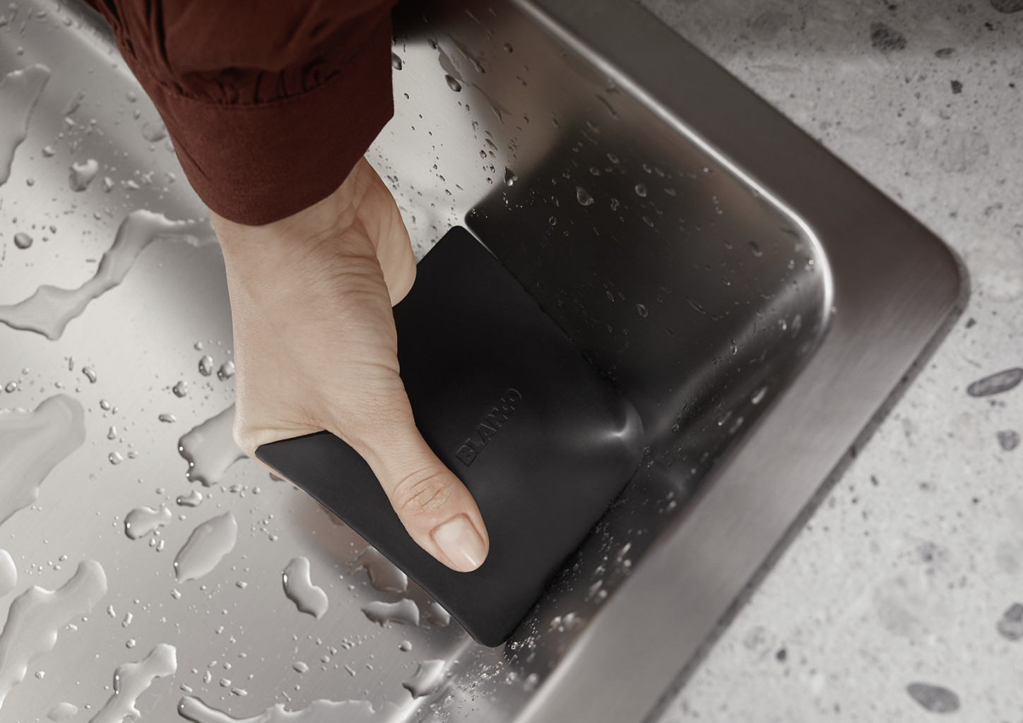 Pro stírání zbytků jídla z nádobí. Stírání vody v oblasti rohu dřezu. Vhodné do myčky nádobí a bezpečné pro potraviny.