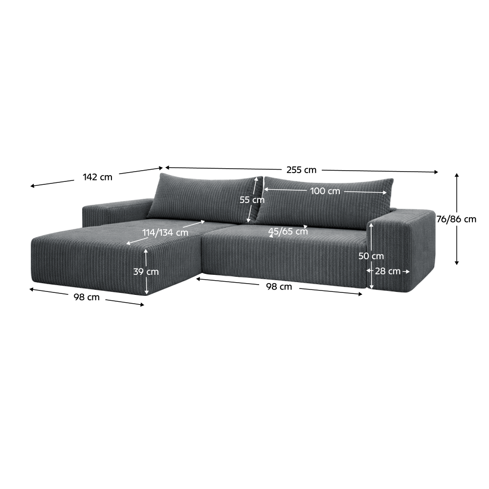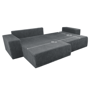 Materiál: látka Tilia 90 • Oděruodolnost textilie podle testu Martindale: 100 000 oděrů • Barva: šedá • Rozměry (ŠxHxV): 255x142x76/86 cm • Plocha na spaní (ŠxD): 120x200 cm • Výška sedu: 39 cm • Hloubka sedu:...