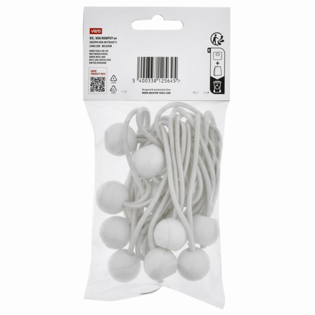 Dotaz na produktPoužijte těchto 10 gumových popruhů KRTH40906 z naší řady Kreator k vytvoření smyčky pomocí kuličky na konci popruhu. Jsou ideální k upevnění srolovaných plachet, stanů, slunečníků, velkých plátěných plachet a podobně. Tyto odolné popruhy měří každý 250 mm a mají průměr 4 mm.