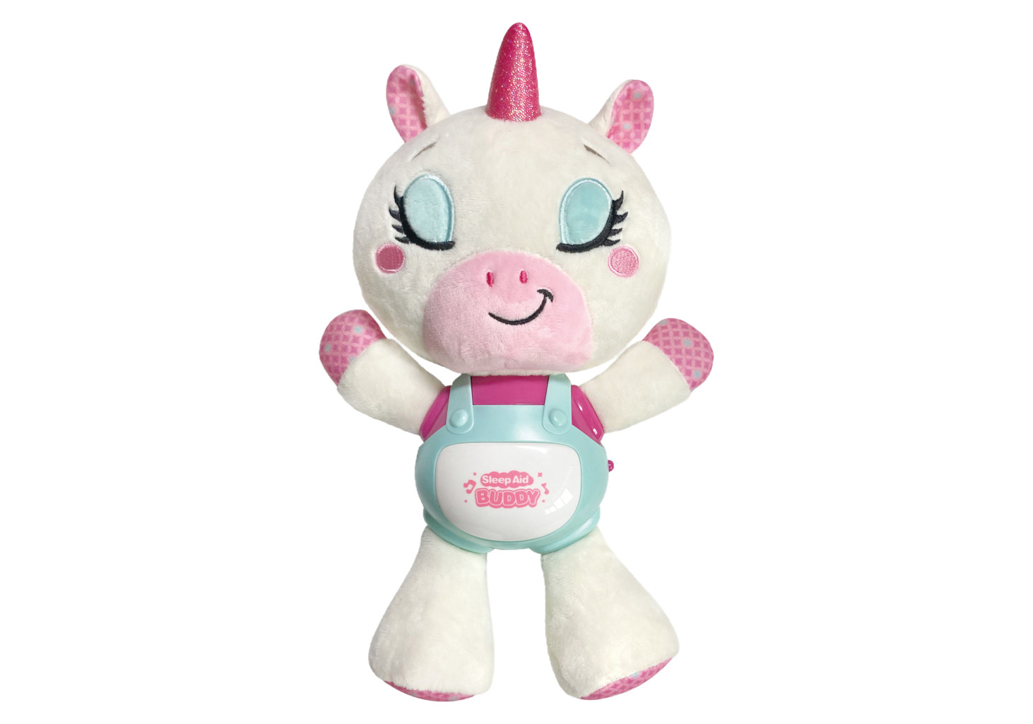 Dotaz na produktUsínáček jednorožec s efekty. Velikost 29cm. baterie 3xAAA nejsou součástí. Přepínač on/off na boku zvířátka. Stisknutím bříška se spouští zvukové efekty- 1. stisknutí ukolébavka, 2. stisknutí uklidňující hudba, 3. stisknutí chrápání, 4. stisknutí pouze světlo, 5. stitknutí vypnutí, 6. stisknutí cycle