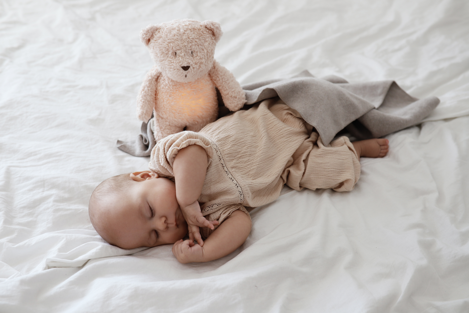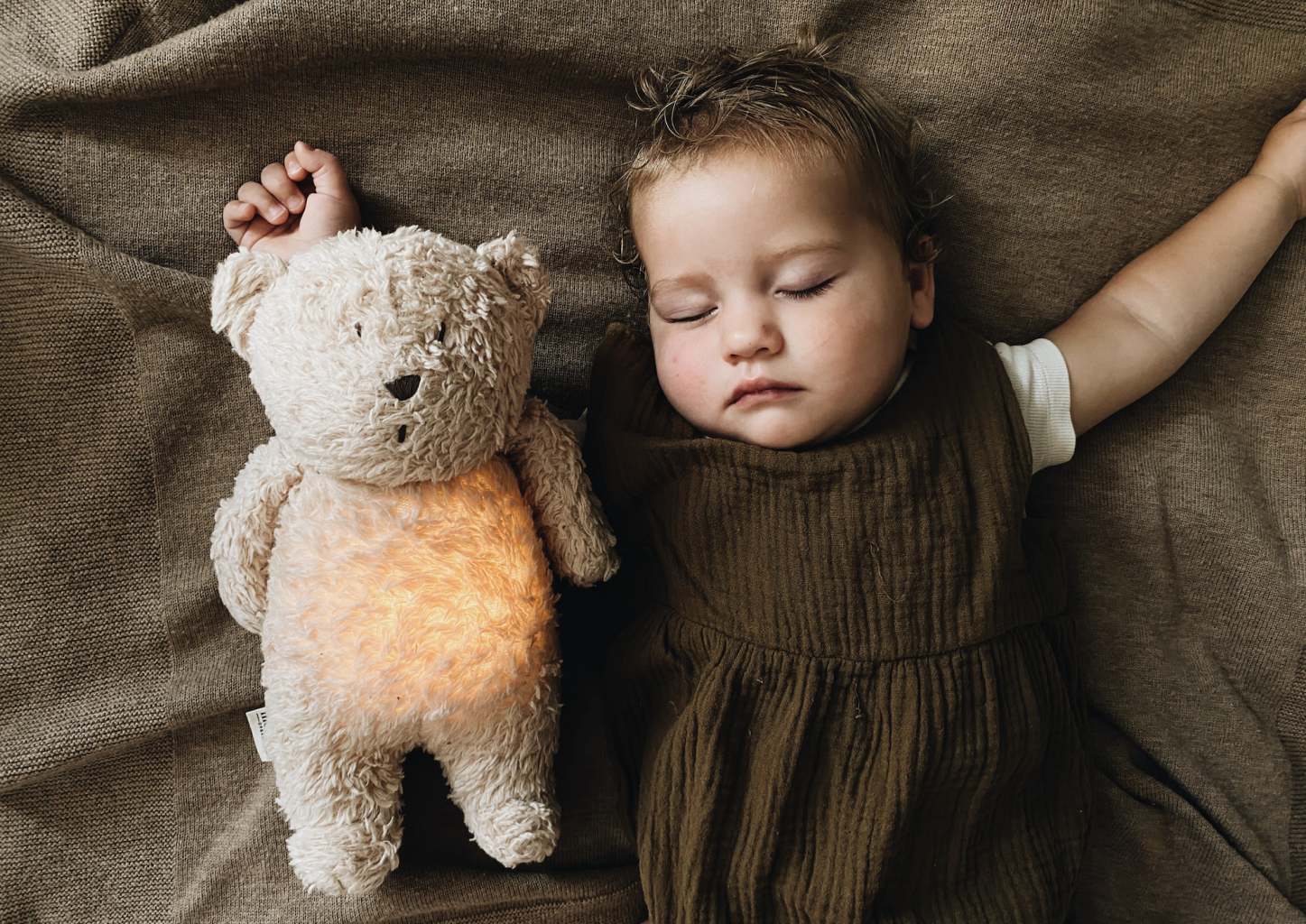 Bříško medvídka svítí a slouží jako noční světlo s výběrem sedmi barev svícení. Jemné světlo pomáhá dítěti cítit se v postýlce bezpečně. Světlo je možné zapnout i bez zvuků. Při zapnuté funkci Shake světlo zapnete zatřesením hračkou. Medvídek se při svícení nijak nezahřívá a je pro dítě zcela bezpečný.